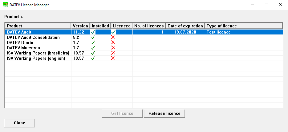 Logo após instalar qualquer produto DATEV encontraremos também instalada, a aplicação denominada Licence Manager. Esta aplicação, tem como objetivo mostrar um resumo de todos os produtos DATEV que se encontram no computador, e a data que vai expirar ...