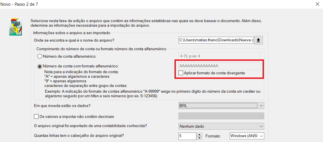 Durante o processo de importação de balancetes, o software DATEV Audit espera contas com um formato de até 15 caracteres alfanuméricos por padrão. Caso seja preciso expandir esse intervalo para que as contas com mais de 15 caracteres alfanuméricos sejam ajustadas, selecionar a opção para usar diferentes formatos de conta: